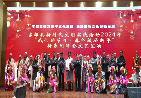 一元复始,万象更新。2月2日下午,拉萨市当雄县2024年“我们的节日·春节藏历新年”新春团拜会文艺汇演在当雄县会议中心举办,县委副书记、代理县长胡克出席并致辞。在家县级领导、三老人员、离退休干部 、基层宣讲员、道德模范、驻村工作队代表及干部群众欢聚一堂,喜迎佳节、共叙情谊、畅谈未来。