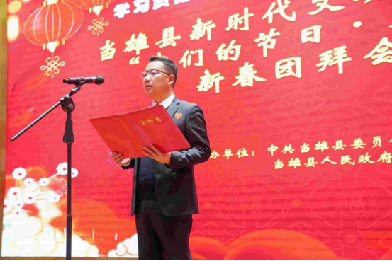 新春团拜会在县艺术团带来的开场舞《极净当雄》中正式拉开帷幕。胡克代表县委、县人大常委会、县政府、县政协向全县人民和长期以来关心支持我县经济社会发展的各族各界人士致以新年问候和新春祝福,向全县各行各业、各条战线为当雄经济社会发展做出贡献的党员干部群众表示诚挚的感谢,并号召大家要更加紧密地团结在以习近平同志为核心的党中央周围,坚持以习近平新时代中国特色社会主义思想为指导,在区市党委、政府的坚强领导下,全面贯彻落实党的二十大精神和区市党委的决策部署,特别是肖友才书记在当雄调研时的讲话要求,团结带领全县各族干部群众把握机遇、坚定信心、振奋精神,主动作为、真抓实干,努力推动全县经济社会高质量发展,为全面建设社会主义现代化新当雄而努力奋斗!